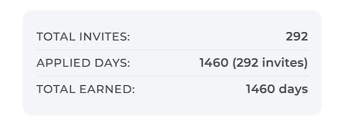 - Active/Pending Status: Whether your referral days are currently active or queued